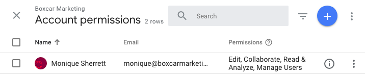 TIP: What is the difference between user management in Account, Property, and View? Google Analytics lets you have multiple accounts. Each account can have multiple properties and each property can have many views. To grant limited access, select User Management under View or Property. Access granted at the Account level allows the user to see the full scope of the account. This is preferrable for Boxcar Marketing setups.