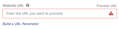 In Facebook Ads Manager, at the Ad level, click “Build a URL Parameter” to open up the builder.