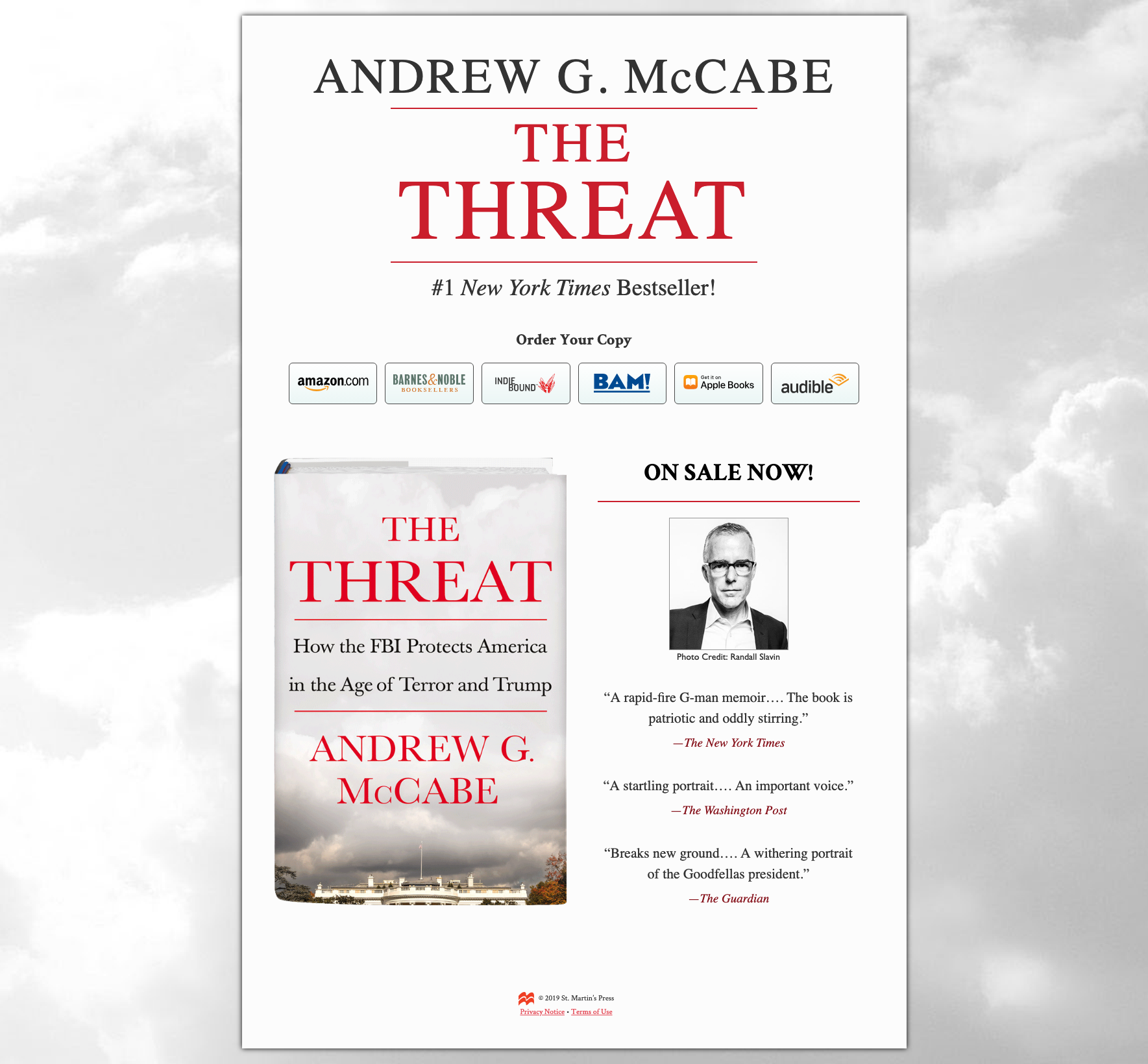 What could be improved: Aim for a consistent call to action. The page has “Order Your Copy” and later “ON SALE NOW!” Order your copy sounds like pre-order. I’d be more overt and say “Click to Buy Now”. The quotes are good, but I’d still offer a 1-line description of the book, “The former acting FBI Director who stood up to President Trump speaks out.”