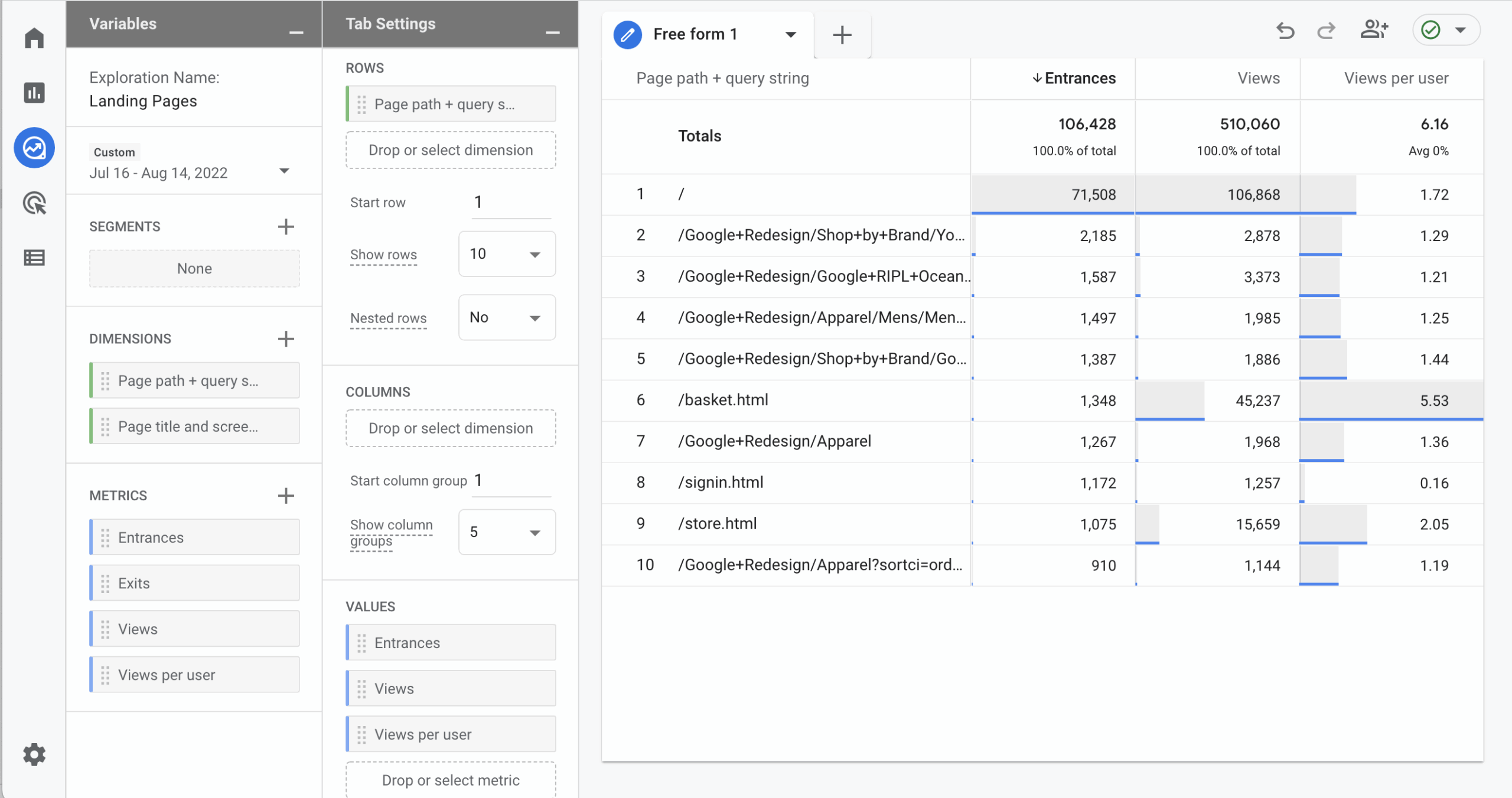 Using Explore to create a Landing Pages report